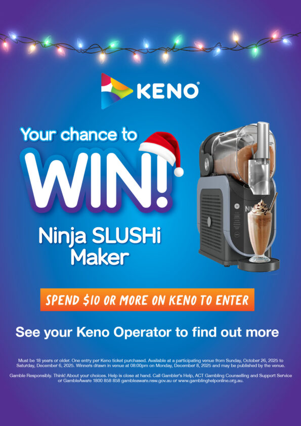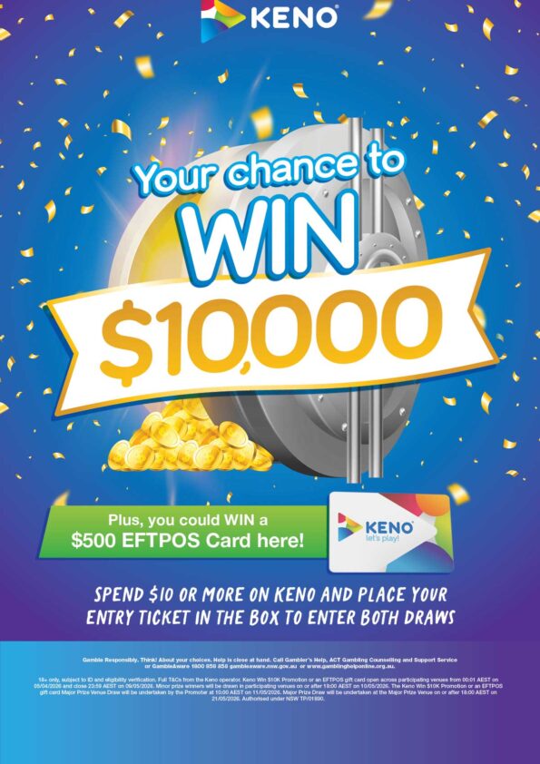 As a member, you are eligible for exclusive promotions and competitions in our Gaming Room every day, see our friendly staff for more details. It is free to become a member.