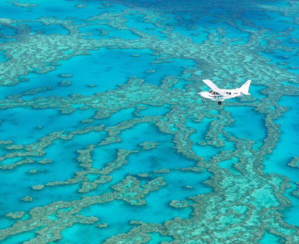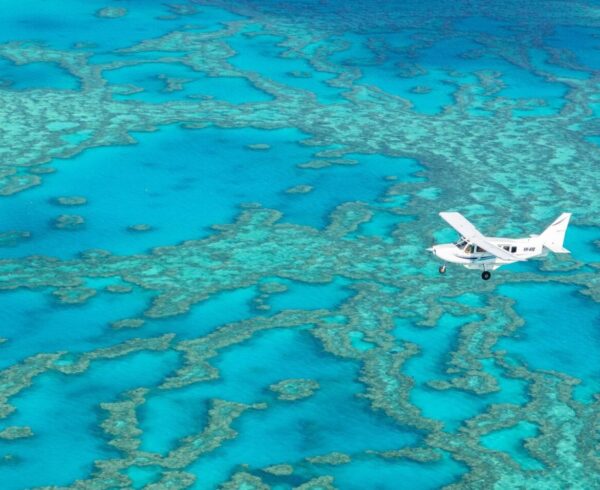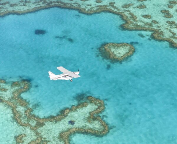 Enjoy a bird’s eye view of many of the 74 Whitsunday Islands, fly over Whitehaven Beach and picture postcard Hill Inlet before heading out to the Great Barrier Reef and experiencing one of the most photographed reef locations, Heart Reef. The comfortable fixed wing aircraft offers offers guaranteed window seats with big window viewing, pilot commentary and the best views of the Whitsundays!