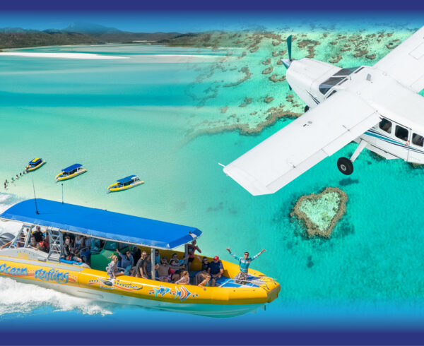 Enjoy the best of the Whitsunday Islands and Great Barrier Reef in one day with a Whitsunday scenic flight and Ocean Rafting adventure! Experience the Whitsundays’ ultimate destinations… Heart Reef, Whitehaven Beach, Hill Inlet and secret snorkelling locations.